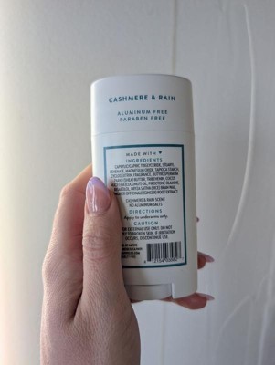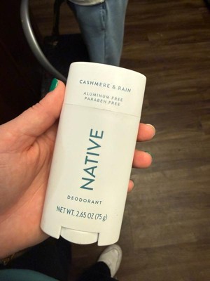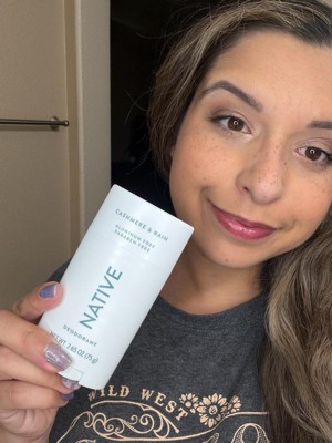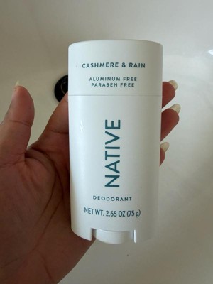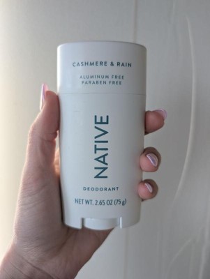 [This review was collected as part of a promotion.] This cashmere and rain deodorant stick from Native smells so good and lasts all day! It's moisturizing and doesn't cause any irritation to my underarms. There's also no white cast or pilling.