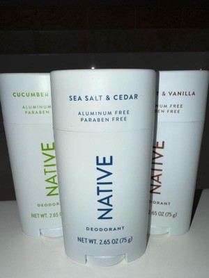 [This review was collected as part of a promotion.] Absolutely obsessed with Native’s Sea Salt & Cedar deodorant! It’s fresh, clean, and smells like a cozy beach breeze. Keeps me feeling confident all day without any harsh ingredients. 10/10!