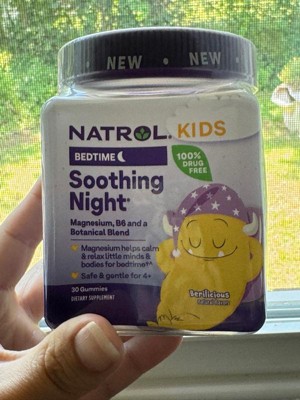 Natrol® Kids Soothing Night® Magnesium Gummies for Children offer a safe, effective and great-tasting dietary supplement option to help calm and relax little minds and bodies before bedtime.(1,2) This Natrol® nighttime sleep aid for kids provides magnesium to calm kids' minds and bodies(1, 2) and vitamin B6 to help support brain function(1), along with a botanical blend of chamomile, lavender and lemon balm. From Natrol®, the #1 drug-free sleep-aid brand.(3)(2) This product is for those low in Magnesium.(3) Nielsen, xAOC, 52 weeks ending 1/27/24, Sleep Aid Supplements