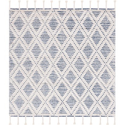 Natura W/ Tassels NAT184 Hand Loomed Indoor Area Rug - Ivory/Blue - 6'x6' - Safavieh