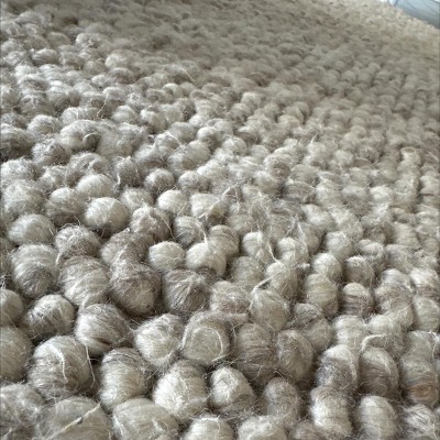 This rug is unique in the way it is made. There are like little buttons of wool all woven one next to the other. Most unusual. It's like a foot massage as you walk on it. The other aspect of this rug is the grey colors are must darker than shown in the photos. They stand out. This can be a good thing, as it won't show dirt as easily. For my color scheme, the darkness does not work. Why can't the pics be realistic? I do not understand. Back it goes.