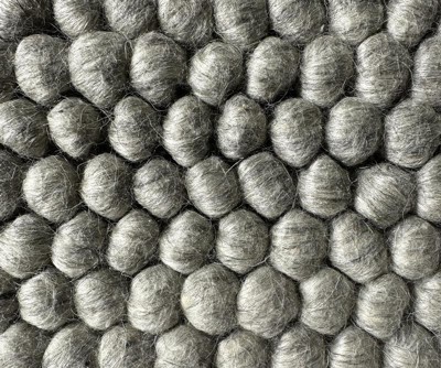 This rug is like a giant Berber pattern. The design is modern and unique. It is wool and soft. I put a rug pad underneath to ensure it won't move.