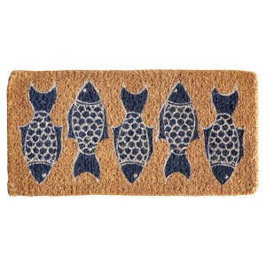 Nothing fishy here, just a cute and inviting doormat to help welcome guests and keep the floors clean. Sure to go along swimmingly with coastal and nautical ensembles, it showcases five blue fish with detailing in white. This mat is crafted from natural coir, so it is perfect for both indoor and outdoor use. For long lasting quality, keep it in a protected area and out of direct sunlight.