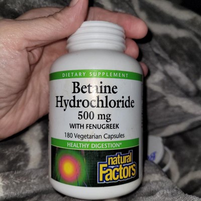 Natural Factors Betaine Hydrochloride with Fenugreek, 500 mg, 90 Vegetarian Capsules