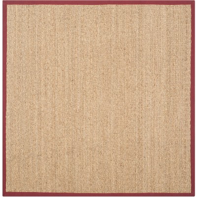 Natural Fiber Basket Weave NF114 Power Loomed Indoor Area Rug - Natural/Burgundy Red - 6'x6' - Safavieh