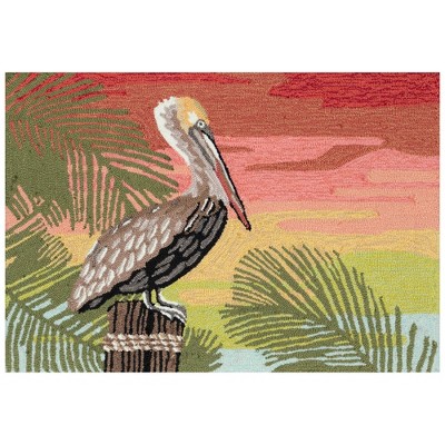 Arrived wrapped in a thick plastic that had multiple holes in it and rug protruding out holes. It is very thick with vary deep groves that would prohibit layering another smaller rig on top. Colors in the rug are pretty though.