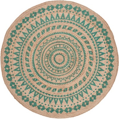 Natural Fiber NF801 Hand Woven Indoor Area Rug - Teal/Natural - 6' Round - Safavieh