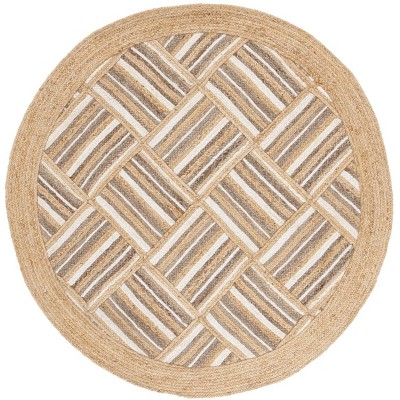 Natural Fiber NF879 Flat Weave Indoor Area Rug - Natural/Grey - 6' Round - Safavieh
