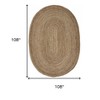 Set an inviting tone in your space with this 7-foot x 9-foot natural jute hand braided oval rug. Crafted from jute fibers that give this piece premium texture, refinement, and appeal. Rugs are a great way to showcase your style, hide imperfections, warm your home and reduce noise. This larger sized, modern styled rug is ready to create a focal point or statement piece in your room. 108-inch h x 108-inch w x 0.5-inch d.