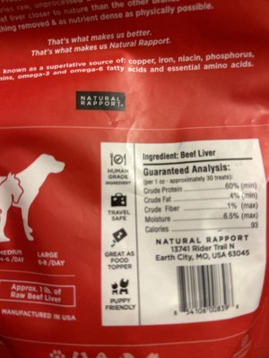 My dog has a sensitive stomach so single ingredient treats are really all i can do. natural rapport dried beef liver is exactly what i was looking for. single ingredient protein that doesn't cause tummy troubles, fresh, a good price, and most importantly- Grizz loves them!