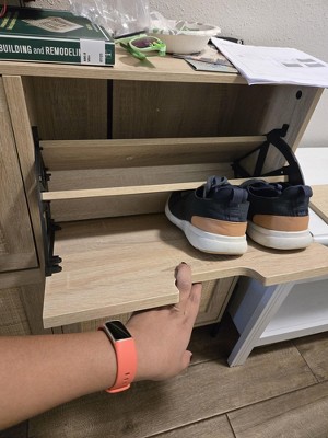 • Strong and durable: The shoe cabinet support feet are made of metal, and the cabinet body is made of solid wood panels, with a stable and durable structure. The top is equipped with an anti-dumping device, which is safer and more reliable to use.