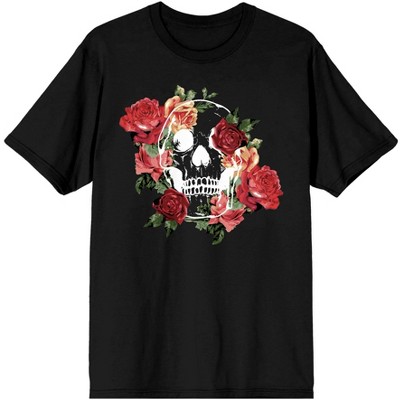 Natural World Skull And Roses Men's Black T-Shirt-3XL