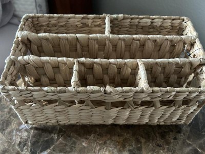 This handwoven vanity organizer is from Threshold. There are six compartments in various sizes to hold makeup and accessories. It looks very nice on my bathroom counter. Very good quality stylish organizer.