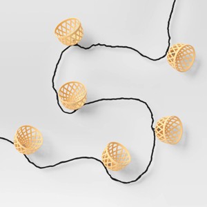 Add a pleasing warm glow to your space with these Woven Look String Lights from Room Essentials™. These string lights include 10 LED bulbs within the shades and boast a constant lighting effect to cast a warm and welcoming glow. Suitable for indoor or outdoor use, these electric outlet-powered string lights are sure to take your decor to the next level. Includes a spare fuse and 2 replacement bulbs however with LED you may never need they they last for a very very long time.