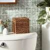 Make your bath space more functional with this Natural Woven Tank Storage . Designed in a cubical silhouette, this storage caddy features a compact design that fits most toilet tanks. Great for storing small bathroom essentials, it features a removable lid that helps keep the contents safe. Showcasing a woven seagrass construction, it's sure to bring a natural touch to your bathroom decor.
