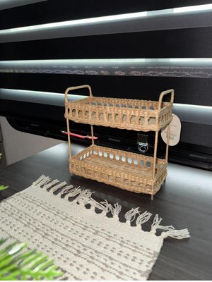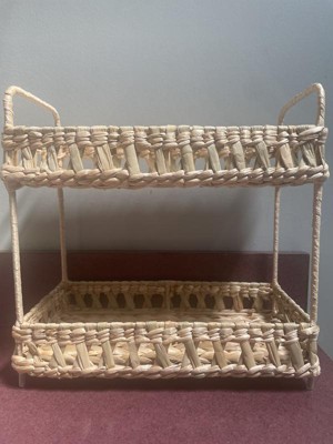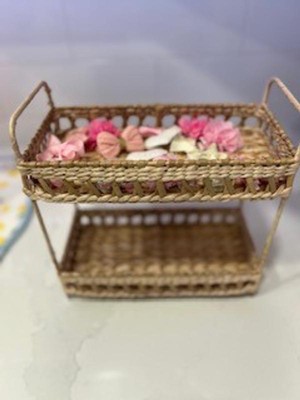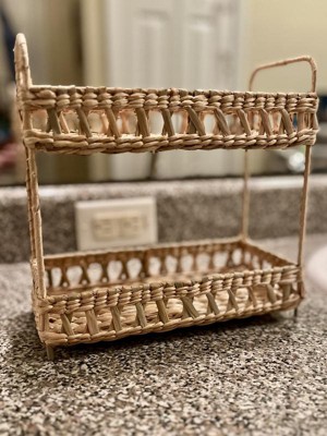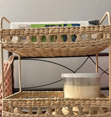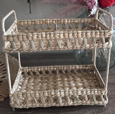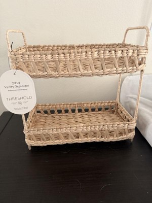 Add natural charm to your space with the Natural Woven Tiered Tray Organizer from Threshold™. This tray organizer features a two-tiered woven wicker structure that provides ample space for your essentials and an artistic appeal you'll love. Designed with a metal frame, this natural tray organizer makes a functional addition to your vanity or any other space.