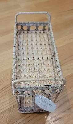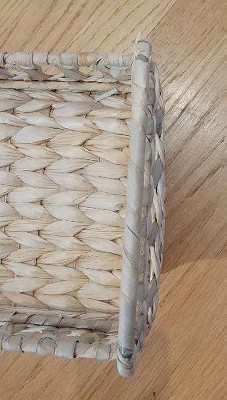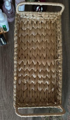 I think this is so cute and I love that it goes perfectly with my decor. It's sturdy and light weight made with handwoven cattail leaves. Cons about this is some products don't sit on it evenly but it depends on the product.