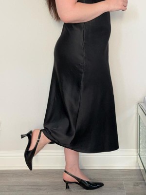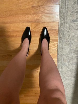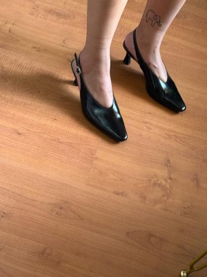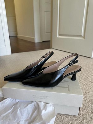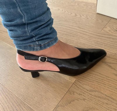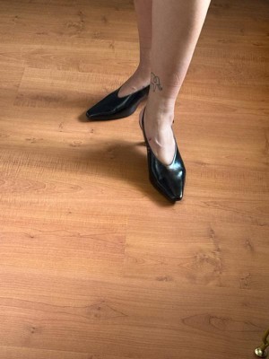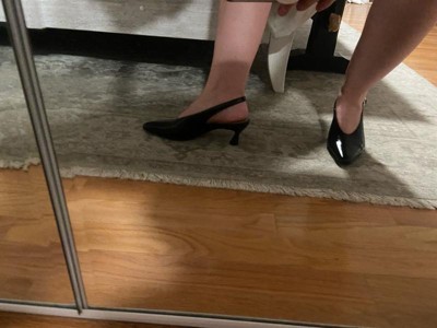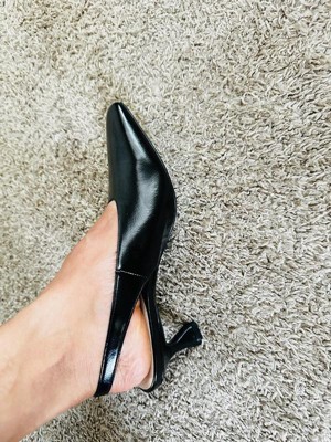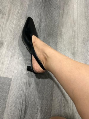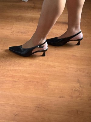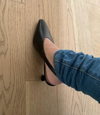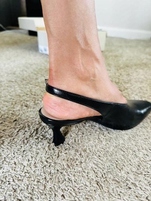[This review was collected as part of a promotion.] These are the perfect black sling backs! They are super comfortable and super versatile. I have worn them to work weekly and even out on the weekends with a cute outfit. The simple yet chic style of the shoe is perfect for almost every outfit. The heel height is not too tall, making them comfortable all day long, and the leather fabric is super smooth and flexible. The only thing is I wish they had more of a block style heel, as someone who doesn’t often wear heels, as I felt a little wobbly in the skinny heel at first, but otherwise an all around great shoe!