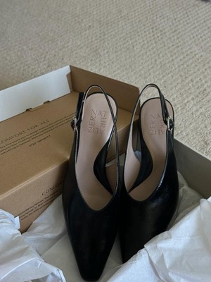 [This review was collected as part of a promotion.] Wow…The embry slingback Naturalizee shoes fit me perfectly. My normal size is 6.5. After having a baby, I guess the shoe size went up, the size 7 fits me perfectly. I really like the leather material, so soft & comfortable. The cushion inside the shoes is definitely what makes me rate good review for this shoes. Plus, I’ve tried slingback shoes from other brands and it didn’t quite work well ( slip out when I move even right shoe size). However, this shoes is just perfect. I recommend you size up.