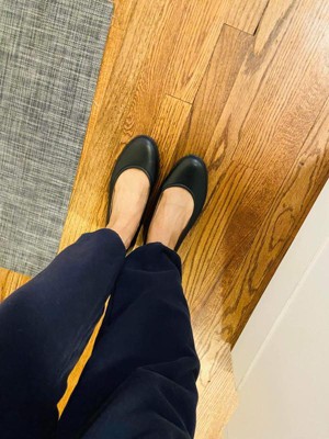 Non-stop comfort. With its traditional silhouette, padded collar and U-shaped vamp, you'll add instant polish to any business, casual, or business casual outfit with this easy-going, comfortable ballerina flat. Get there beautifully.