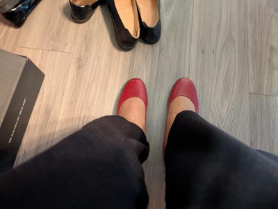 Love the rich red colour. I have several pair of flexy flats and enjoy all of them. I just wish more Naturalizer shoes came in size 10.5 because 10 is too tight and 11 can run too large on my smaller foot.
