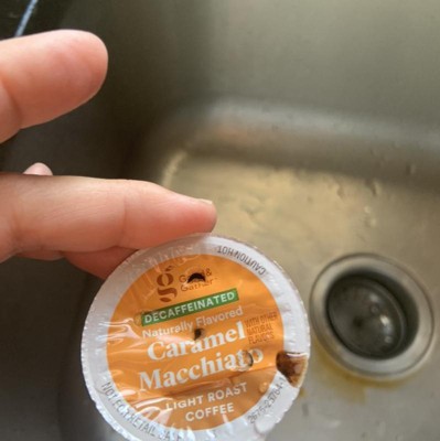 Enjoy your favorite coffeehouse flavors without leaving the comfort of your home with Naturally Flavored Caramel Macchiato Decaf Single Serve Pods from Good & Gather™. This light roast coffee is made from Arabica beans grown in South America, and it features the flavors of sweet buttery caramel and vanilla. The coffee is Fair Trade Certified™ for a sip you can feel good about savoring, and it comes in single-serve BPA-free EcoCup® packaging that's recyclable for easy disposal. Enjoy it on its own for a satisfying cup that's sure to hit the spot, or mix with creamer and serve blended or over ice for a more indulgent experience.