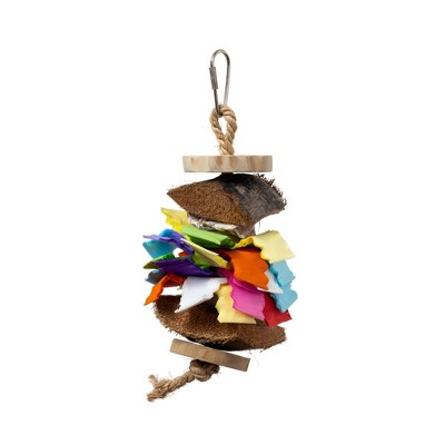 Prevue Pet Products Naturals Lantern Bird Toy 62810 is handmade from 100% natural, sustainable, materials to provide your bird with mental stimulation and rugged physical play. Made from environmentally conscious coconut and sisal fibers, ropes and woods this bird toy satisfies plucking, preening and nest-building urges. Toy connects easily to cage with quick link attachments and is hand made, actual measurements may vary slightly. As always, supervise birds at play. Our Naturals Lantern bird toy is approximately 4 1/2" in diameter and 11 5/8" long.