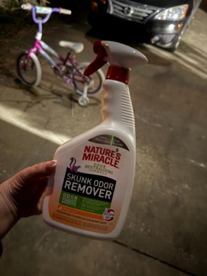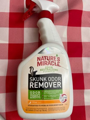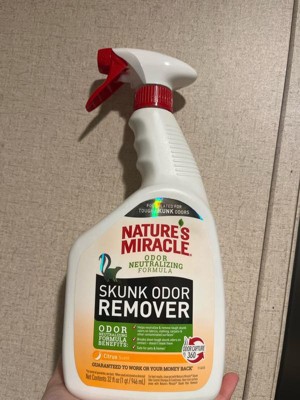 [This review was collected as part of a promotion.] Natures miracle is a great product. I was really excited to try the skunk odor remover because I knew that they would honor it and it was guaranteed to work. It worked great in neutralizing the odor. It took odors out instead of just covering it up and I really liked that it has a pleasant citrus scent. Its safe for my pets and my house. I received a complementary bottle and exchange for my review. All comments and opinions on my own.