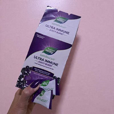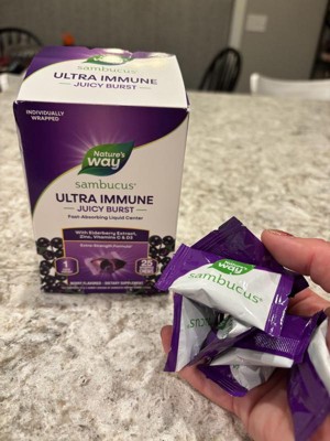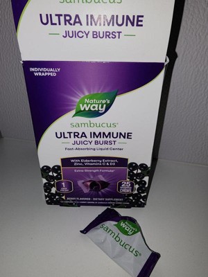 [This review was collected as part of a promotion.] I'm thoroughly impressed with Nature's Way Sambucus Ultra Immune Juicy Bursts. These chews provide excellent immune support with high potency vitamins C and D3, along with premium elderberry extract. The individually wrapped chews make them perfect for on-the-go immune support. My favorite part is the delicious berry flavor and fast-absorbing liquid center. I've noticed a significant boost in my immune system since incorporating these into my daily routine. Highly recommend!