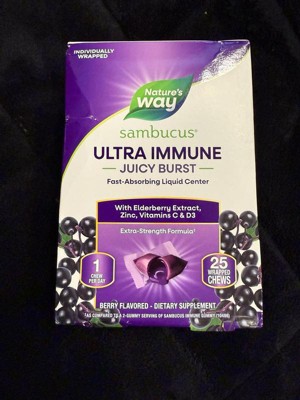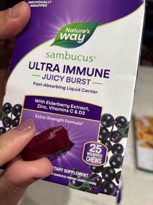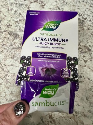 Nature's Way Sambucus Ultra Immune Juicy Burst Chews with Vitamins C & D3, Zinc, Elderberry Extract - Berry Flavored - 25ct