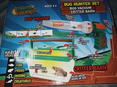 THE AMAZING BUG HUNTER KIT: An entire bug catcher play set including the patented Bug Vacuum and the Critter barn habitat. This toy creates a complete catch and release learning experience for kids so they can enjoy nature and learn at the same time. The bug vacuum lights up bugs then sucks them up! The patented Bug Vacuum is fun indoors and outdoors. Safely capture a variety of bugs, study them with the built in magnifier, and set them free. See bugs in their natural habitat. Get up, get out, get Nature Bound! Great for kids ages 3, 4, 5, 6, 7, 8, 9, 10, 11, 12, 13 and up. Requires 4 x "AA" batteries - not included. Perfect birthday or holiday gift. STEM toy /Science toy designed by THiN AiR Brands in Colorado, USA