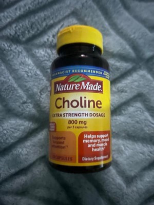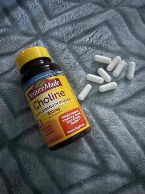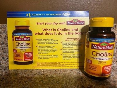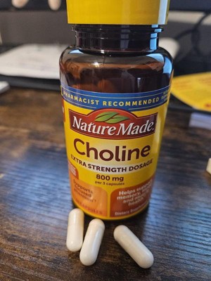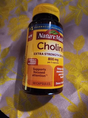 - Brain health support supplement: contains one 60 count bottle of Nature Made Extra Strength Dosage Choline 800 mg per serving Capsules for a 20-day supply