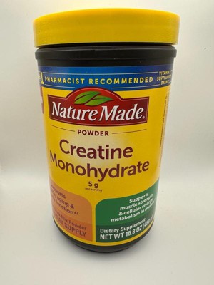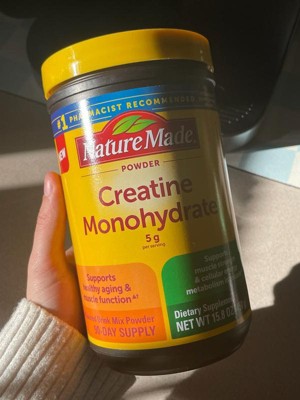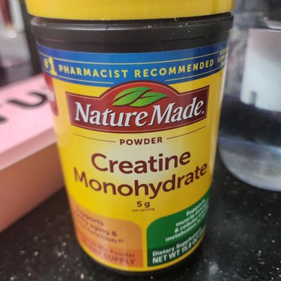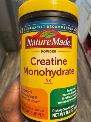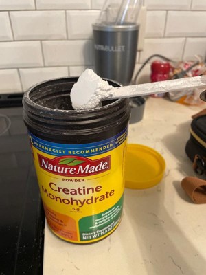 Nature Made Micronized Creatine Monohydrate Drink Mix Powder provides 5 g per serving to support healthy aging and muscle function, muscle strength and cellular energy metabolism in muscles when taken in combination with resistance training. This vegetarian and gluten free Creatine drink mix powder is unflavored with no preservatives and no artificial colors. Adults over age 18, take one level scoop daily. To enjoy, mix one level scoop of Creatine powder into 4-6 oz of water or other beverages; powder dissolves easiest in room temperature or warm liquid. Please consume adequate water and electrolytes during exercise. Get high-quality Creatine for women and men from Nature Made. (1)In combination with resistance training. *Based on a 2024 survey of pharmacists who recommend branded vitamins and supplements.CAUTION: Not for use by individuals under the age of 18 years. If you are planning to undergo lab testing, pregnant, attempting to become pregnant, nursing, taking any medications, or have any medical conditions, consult your physician before use.These statements have not been evaluated by the Food and Drug Administration. This product is not intended to diagnose, treat, cure, or prevent any disease.