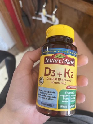 - Nature Made Vitamin D3 and K2 softgels provide 5000 IU (125 mcg) of Vitamin D for immune support and to support healthy aging, bone health, teeth health and muscle health
