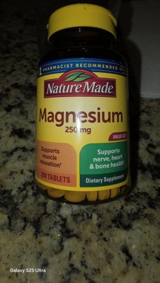 - Heart, bone and nerve support supplement: contains one 200 count bottle of Nature Made Magnesium Oxide 250 mg Tablets for a 200-day supply