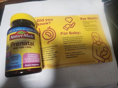 Nature Made Prenatal with Folic Acid + DHA, Prenatal Vitamin and Mineral Supplement Softgels - 60ct