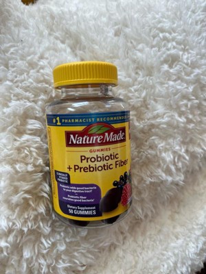 - Gut health support supplement: contains one 50 count bottle of Nature Made Probiotic + Prebiotic Fiber Gummies for adults, 25-day supply