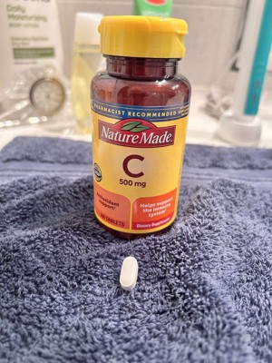 Nature Made Vitamin C 500 mg is a dietary supplement that supports immune health, provides antioxidant support, and aids in iron absorption. Sourced from high-quality ingredients, this gluten free Vitamin C for adults antioxidant supplement has no color added, no artificial flavors, and no added preservatives. Vitamin C is not only an antioxidant that helps support your immune system, but it is also needed for collagen synthesis to support overall skin health. If you are not receiving enough Vitamin C from your daily diet, then this 500mg Vitamin C supplement can help. Adults take one Nature Made 500 mg Vitamin C tablet daily with water and a meal. Nature Made supplements are quality you can trust. *Based on a survey of pharmacists who recommend branded vitamins and supplements.CAUTION: If you are taking medication, consult your physician before use.These statements have not been evaluated by the Food and Drug Administration. This product is not intended to diagnose, treat, cure, or prevent any disease.