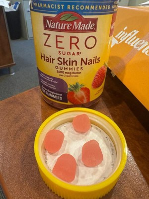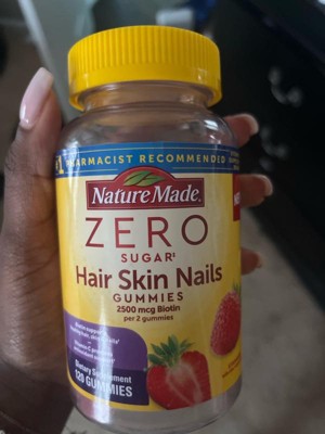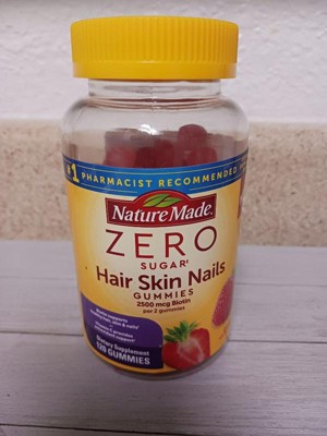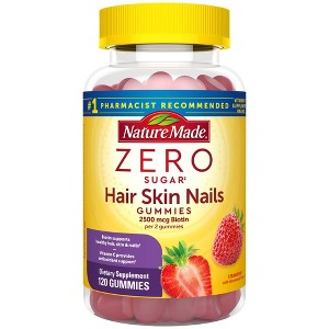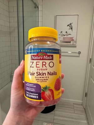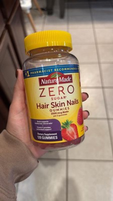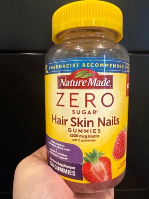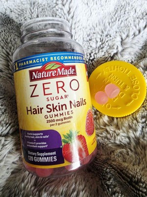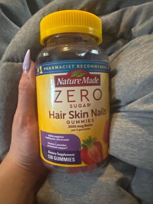 - Healthy hair, skin, nail support supplement: contains one 120 count bottle of Nature Made Zero Sugar (1) Hair Skin Nails Gummies for a 60-day supply