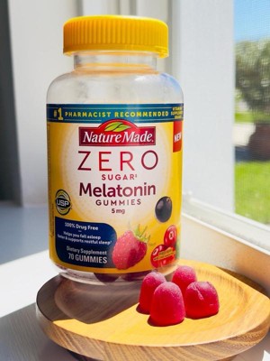- Extra strength sleep supplement: contains one 70 count bottle of Nature Made Zero Sugar (1) Melatonin Gummies 5mg for a 70-day supply
