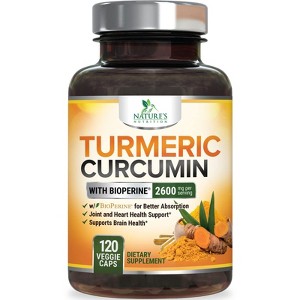 Nature's Nutrition Extra Strength Turmeric Curcumin Supplement with BioPerine® (2600mg per Serving): For powerful joint and wellness support, make our Turmeric BioPerine® Curcuma Capsules part of your daily routine. Expertly blended turmeric curcumin with black pepper, also known as BioPerine® provides unparalleled absorption. Each tumeric capsule is a powerhouse combining 2600mg of high-quality curcuminoids and black pepper extract for maximum support. Crafted for those seeking a natural approach to health, our Turmeric Capsules are more than just a supplement; they're a commitment to your body's well-being. With turmeric celebrated for its joint support and antioxidant properties, and curcumin recognized as its active component, we've captured the essence of these benefits in every bottle. But we didn't stop there – BioPerine, an extract of black pepper, is the key to unlocking the full potential of curcumin, enhancing absorption and delivering the benefits faster to where they're needed most. Our vegan, non-GMO capsules are bottled with care in the USA, ensuring you receive nothing but nature's best. This commitment to quality means you can trust each turmeric capsule to be free from artificial ingredients and full of nature's intended benefits.