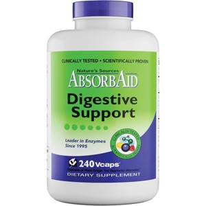 Nature's Sources AbsorbAid supports digestion and stomach health. The specialized formula helps digest every food group. AbsorbAid increases your body's ability to absorb nutrients. Its unique stabilized plant enzymes have been bio-engineered to be stomach- and acid-stable and continue to be active in the small intestine. AbsorbAid also helps alleviate mild and occasional digestive disturbances such as gas, bloating and indigestion.