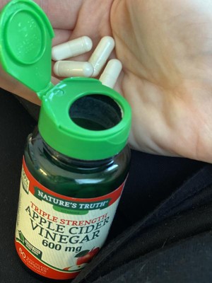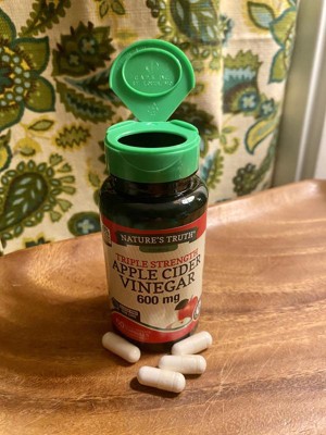 Nature’s Truth triple strength Apple Cider Vinegar delivers 1,200 mg of Apple Cider Vinegar Powder per serving. This advanced formula comes in convenient, quick release capsules and has no harsh aftertaste – it is designed to be an easy addition to your daily routine.
