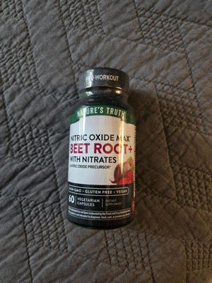 Beet Root is a nutrient-rich superfood that is a source of naturally occurring vitamins, minerals, and antioxidants. For centuries, beets were cultivated and considered a staple in ancient Greece, Rome, and Egypt – sometimes using beet root juice to add color to bland foods. Beet Root supplements are a wonderful alternative for those who don’t love the taste of beets or who are unable to incorporate this superfood daily. Nature’s Truth Nitric Oxide Max Beet Root Capsules