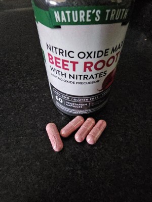 [This review was collected as part of a promotion.] Nature's Truth Beet root is an easy way to get nutrition. It's packed with Vitamin C, B12 and Niacin and nitrates. Mauve capsules with no obvious flavor, and they go down easily.