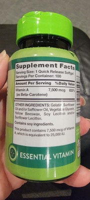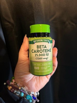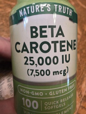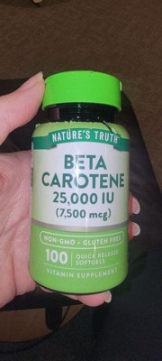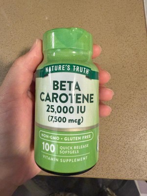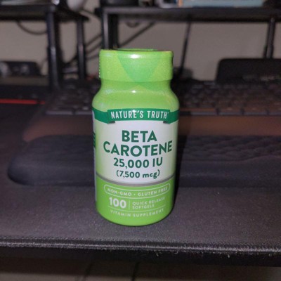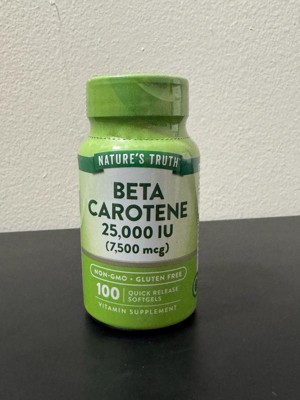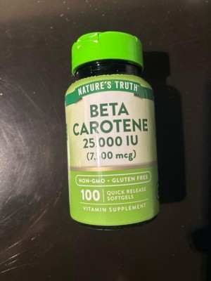 Nature's Truth now offers a premium Beta Carotene Supplement. A single serving provides 7,500 mcg (25000 iu) of Vitamin A (100% as Beta-Carotene) through Quick-Release softgels .Purity and potency are our top priorities at Nature's Truth, which is why our formula is Non-GMO, Gluten-Free and contains no Artificial Flavor, Sweetener or Preservatives. It's the perfect addition to any professional Vitamin regimen!