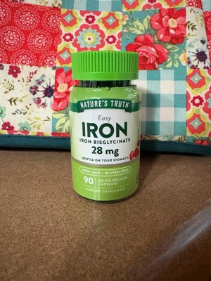 [This review was collected as part of a promotion.] I've been using Nature's Truth Easy Iron capsules and find them to be an excellent option for an iron supplement. They contain 28 mg of iron bisglycinate, a form known for being gentle on the stomach. Plus, they're quick-release capsules, which I find super convenient for my daily routine. I like that they're gluten-free and non-GMO, as that gives me more confidence in what I'm taking. An essential supplement to complement your daily nutrition.