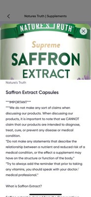 [This review was collected as part of a promotion.] I recently started using Nature’s Truth Saffron Extract, and I've been thoroughly impressed with the results. The high-quality saffron extract is known for its potential mood-enhancing benefits, and I've noticed a subtle but positive improvement in my overall mood and well-being. The capsules are easy to take, and I appreciate that Nature’s Truth ensures the extract is pure and free from unnecessary additives. Overall, it's a reliable supplement that lives up to its claims, and I would highly recommend it to anyone looking to explore the benefits of saffron extract.