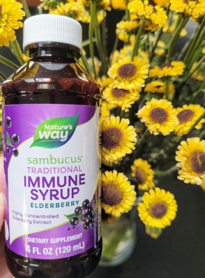 Nature's Way Sambucus Black Elderberry Syrup provides natural immune support and antioxidant benefits with a delicious, easy-to-take syrup. Formulated with black elderberry extract, this syrup helps adults maintain healthy immune function during seasonal changes. Ideal for daily wellness or supplemental immune support, the 4oz bottle offers convenient dosing and a naturally flavorful supplement.