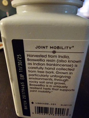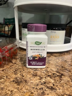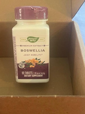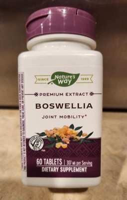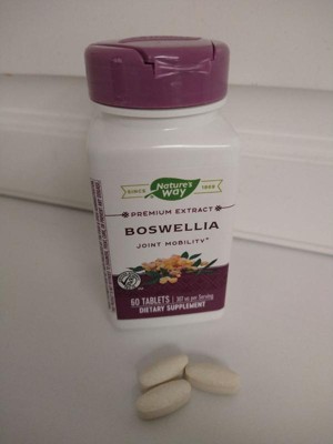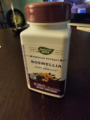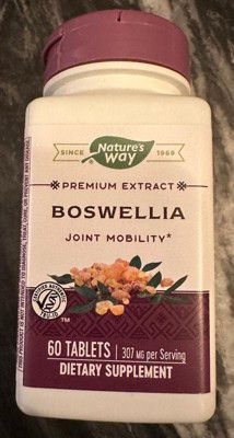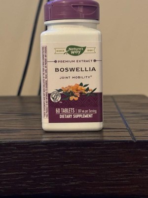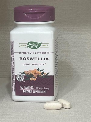[This review was collected as part of a promotion.] I have taken Nature's Way supplements before but never boswellia. This dietary supplement is to aid in joint mobility. The bottle contains 60 tablets and you take 1 tablet three times daily with food and water. This is a very easy to swallow pill, partly due to its shape. I think it helped me with my joint mobility and it was easy to take. As with all supplements, check to make sure they don't interfere with anything else you may be taking.